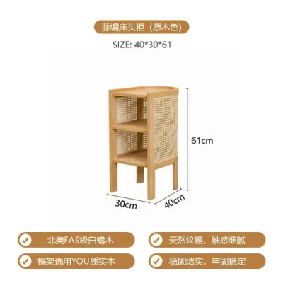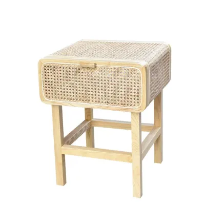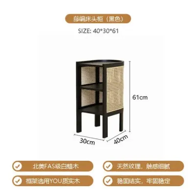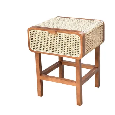 Einfacher Retro-Nachttisch für Zuhause Schlafzimmer Wohnzimmer Kleiner Beistellschrank aus massivem Holz mit Rattanregal Schlafzimmermöbel