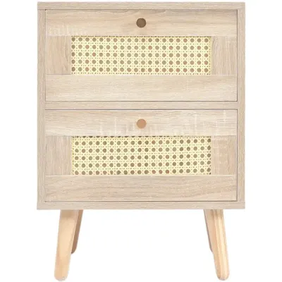 Nachttisch Beistelltisch mit 2 Schubladen Eiche Rattan Rattan Schubladenfronten Sofa Tisch Schlafzimmermöbel H55/w40/d40cm