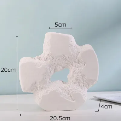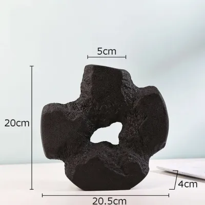Keramikvase mit unregelmäßiger Steinfigur, hohler Blumenvase mit floralem Zubehör in Schwarz-Weiß, Dekoration für Zuhause